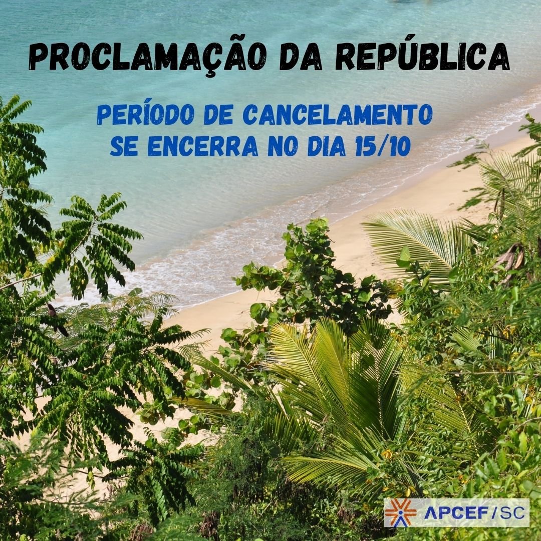 Atenção para o início das inscrições para o feriado de Proclamação da República Período de hospedagem: 12 a 15/11/2021 Início das inscrições: 04/10/2021 Término das inscrições: 12/10/2021 Divulgação do resultado: 13/10/2021 Período de cancelamento: 13 a 15/10/2021 Acesse o Portal do Associado para realizar sua