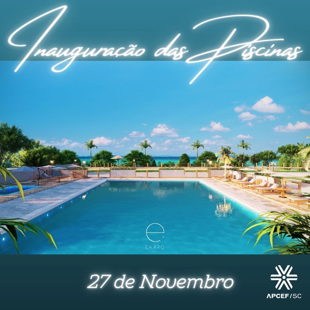 As novas piscinas da APCEF/SC serão inauguradas no dia 27 de novembro. Para celebrar o trabalho de reforma da área, será realizada uma cerimônia a partir das 18h. O evento será aberto aos associados, mediante inscrição até o dia 24/11. As vagas são limitadas e,