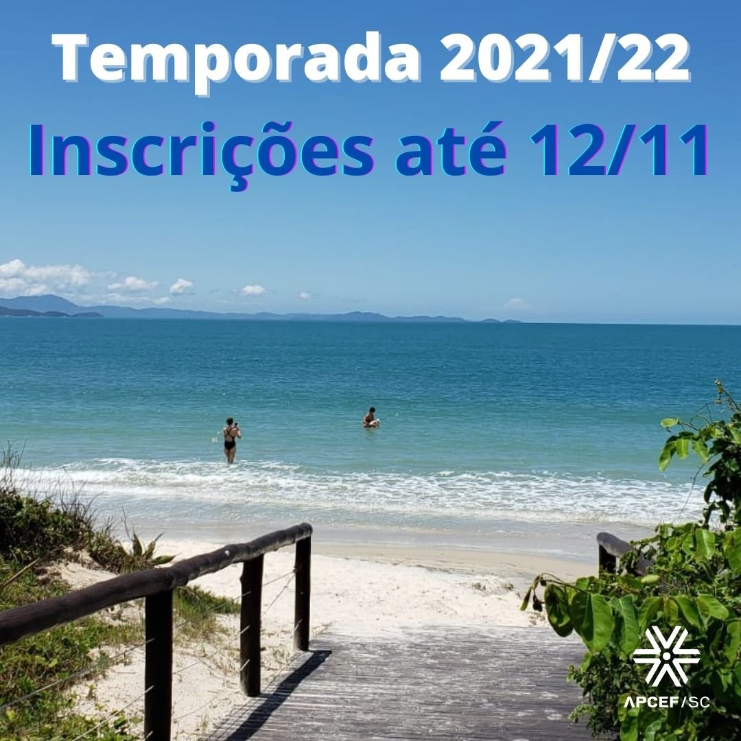 A APCEF/SC divulga o cronograma para inscrições de reservas nos apartamentos e camping da sede, para o período de dezembro 2021 a Fevereiro 2022. Confira: Início das inscrições: 25/10/2021 Término das inscrições: 12/11/2021 Divulgação do resultado: 16/11/2021 Período de cancelamento: 16 a 22/11/2021 A