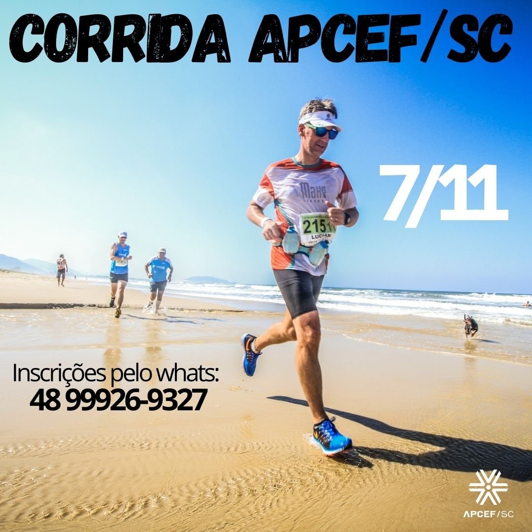 Está aberto o período de inscrições para a Corrida APCEF/SC. Será última corrida ‘virtual’, ou seja, individual. Com o controle da pandemia, em razão da vacinação, espera-se que em abril, seja realizada a tradicional Corrida Fenae/Apcef. Desde já, agradecemos a todos os que participaram e